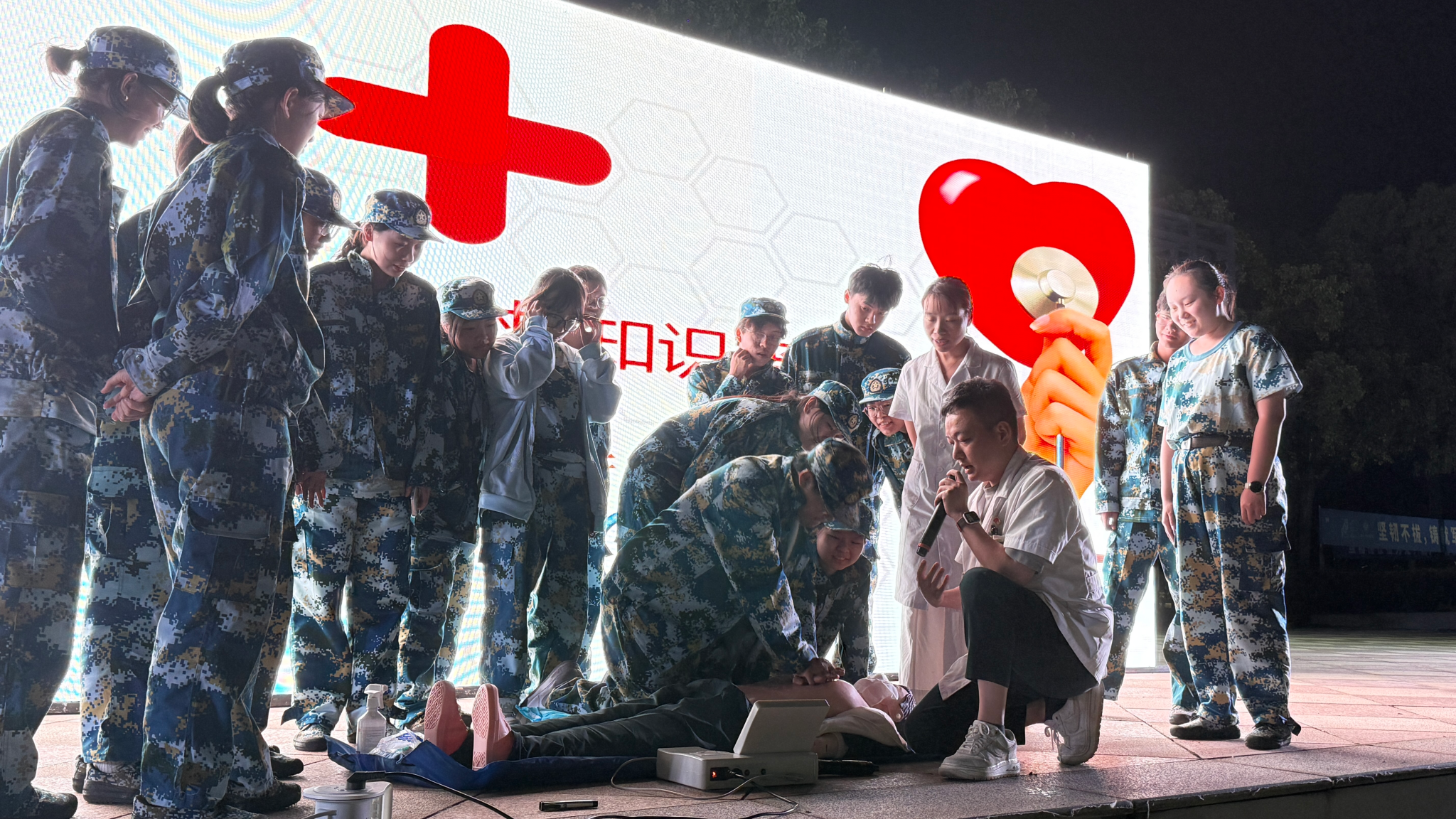 9 月 23 日,校卫生所专为新生定制的 “开学健康第一课”开讲。卫生所秦医生围绕军训常见健康问题,讲解中暑、外伤、低血糖、晒伤的应急处理方法,普及登革热、基孔肯亚热“两热”防控知识,和结核病、艾滋病等传染病防治知识;医保办邹老师详细解读大学生医保报销流程与就医注意事项,解答就医保障疑问;徐医生以理论讲解结合实操示范,细致拆解 AED 使用原理与心肺复苏(CPR)核心步骤,并现场邀请同学们上台模拟实操,台下同学们踊跃报名,积极尝试,现场学习氛围浓厚。
